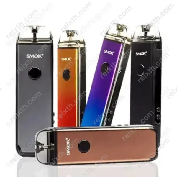 SMOK ACRO Pod Kit บุหรี่ไฟฟ้าประเภทพอตจากแบรนด์ชื่อดังอย่าง SMOK มาพร้อมกับแบตเตอรี่ที่ติดตั้งภายในตัวขนาด 1000mAh จ่ายไฟด้วยระบบอัตโนมัติผ่านเซนเซอร์ด้วยจับการสูบที่สามารถสูบได้โดยไม่ต้องกดปุ่ม หรือจะใช้ปุ่มเปิด/ปิดเพื่อยิงไฟแบบคล่าสิคก็ได้เช่นกัน นอกจากนี้ยังสามารถปรับกำลังไฟได้อีกด้วย ตั้งแต่ 5 – 25W มีหน้าจอแสดงผลแบบ OLED ขนาด 0.69 นิ้ว ที่จะแสดงสถานะต่างๆของตัวเครื่อง หัวพอตมาพร้อมคอยล์แบบลวด Meshed ขนาด 0.8 โอห์ม เหมาะสำหรับฟิลสูบแบบ MTL สามารถจุน้ำยาบุหรี่ไฟฟ้าได้มากถึง 2ml.