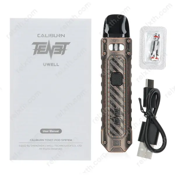 Uwell Caliburn TENET Pod Kit บุหรี่ไฟฟ้าประเภทพอตจากแบรนด์ดังอย่าง Uwell ที่มาพร้อมดีไซน์ลำสมัย เท่ ดุดัน ไม่เกรงใจใคร ตัวเครื่องมีขนาดเล็ก ทำจากวัสดุอลูมิเนียมอัลลอยด์ น้ำหนักเบา สามารถพกพาไปใช้งานนอกสถานที่ได้อย่างสะดวก มีแบตเตอรี่แบบติดตั้งภายในตัวขนาด 750mAh ใช้ได้อย่างยาวนาน รองรับการชาร์จที่รวดเร็วผ่านพอร์ตแบบ USB Type-C สามารถจ่ายไฟได้ถึง 16W เป็นแบบ 2 ระบบคือ สูบได้โดยไม่ต้องกดปุ่ม หรือกดุ่มเพื่อจ่ายไฟแบบคลาสสิคก็ทำได้เช่นกัน บรรจุน้ำยาบุหรี่ไฟฟ้าได้ถึง 2ml. ใช้งานร่วมกับคอยล์ Caliburn G และ Caliburn G2 ให้ฟิลสูบแบบ MTL ช่วยดึงกลิ่น และรสชาติของน้ำยาให้ออกมาได้ดีอย่างที่ควรจะเป็น